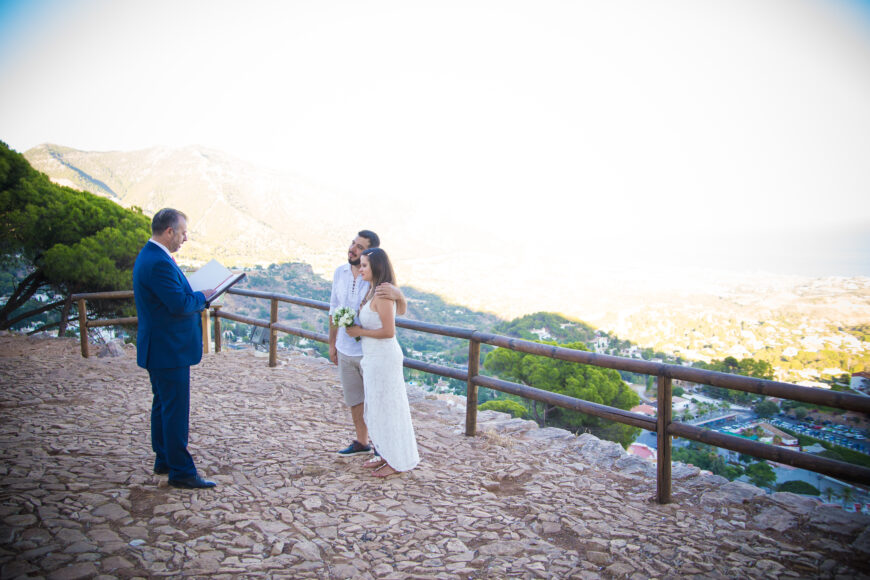 En las fotografías una ceremonia sorpresa de una pareja de brasileños en la ermita de Mijas.